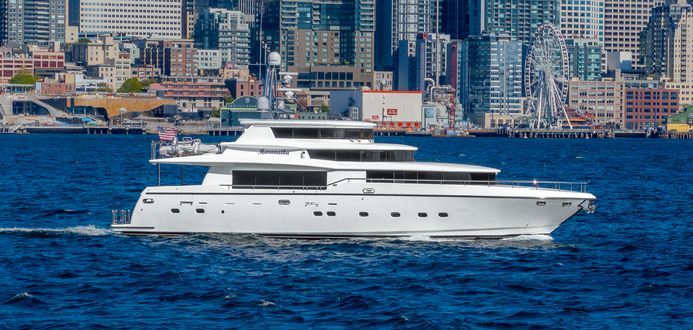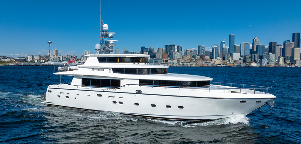 “Maranatha” is a beautiful example of Johnson’s 87’ Skylounge Motor Yacht. This 2-owner yacht has been meticulously maintained by knowledgeable yachtsmen since taking ownership in 2013. The J87SL offers more of a “Mega-yacht” feel compared with similar quality-built motor yachts of her time, this is in part because of the yachts 23’ beam, the smart interior design, combined with use of handcrafted cherry wood and sumptuous soft-goods which creates large, open and beautiful living spaces, pilot stations and staterooms. A great feature on this J87SL is the main propulsion system which are twin Caterpillar C32 1652HP diesel engines with only 1450 original hours.