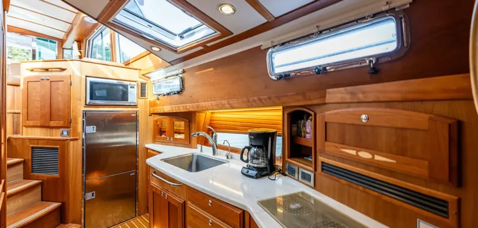 This S48 Salon accommodations features include three staterooms and cabins with three heads. The 3rd cabin being located midships and houses a double berth and side-by-side washer and dryer. Designed with our customers in mind, the galley-down layout doesn’t compromise on space and light, making food and drink preparation a pure pleasure. Unique to the Sabre 48 design, its owner's suite and en-suite head have an athwartships orientation, allowing for flat cabin sole on all sides of the spacious walk-around island queen bed.